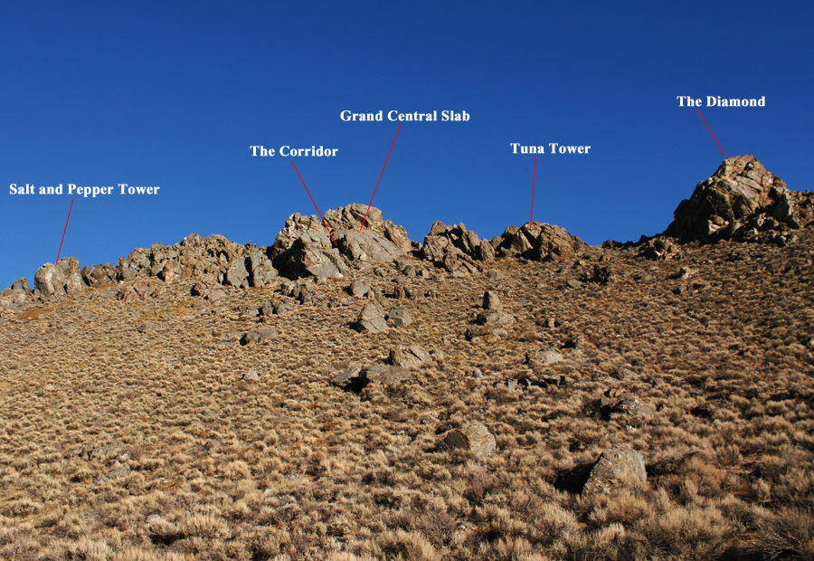 left into dirt parking area. The climbs should be obvious (they should