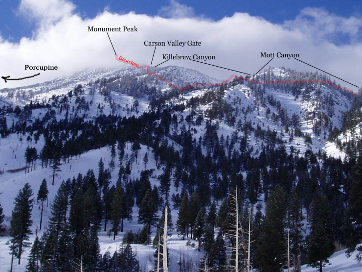 anywhere along the boundary line for either Killebrew or Mott Canyon,